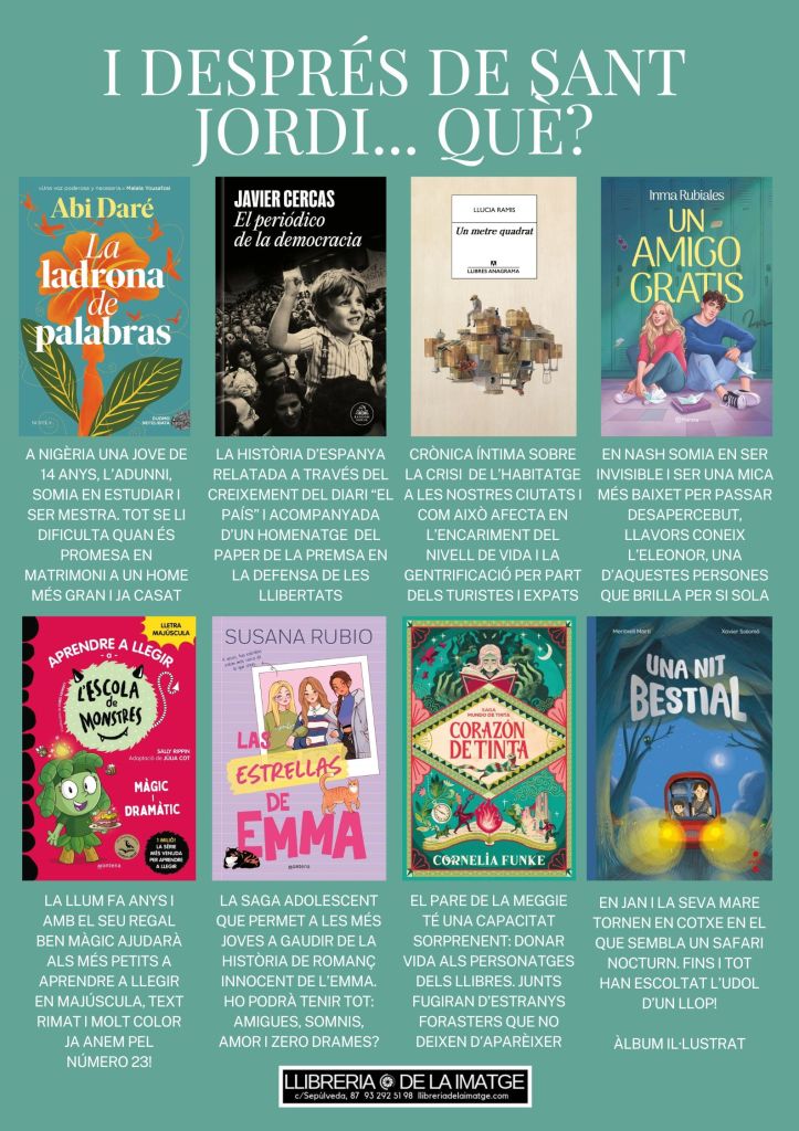 Som una llibreria general del barri de Sant Antoni. Seleccionem acuradament els títols de narrativa, poesia, fotografia, il·lustració… i, sobretot, els del petit racó infantil i juvenil que tant agrada als clients més menuts. Però també mantenim les arrels que ens han fet créixer: les del món del cinema, oferint als nostres clients molts títols tant temàtics com tècnics.