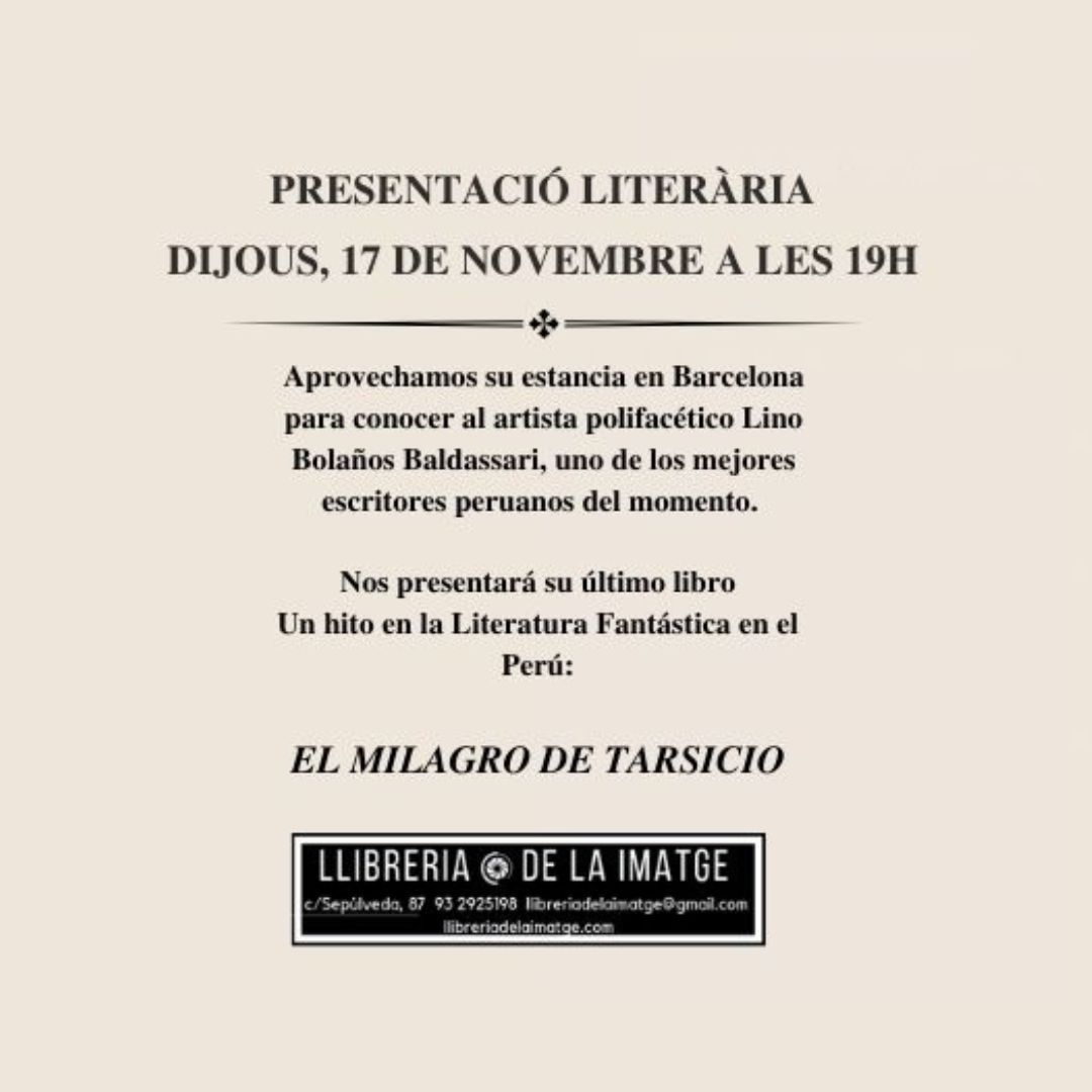 Presentació literària: “El Milagro de Tarsicio” On Novembre 11, 2022 Per llibreriadelaimatgeIn ACTIVITATS I ACTES CULTURALSDeixa un comentari Comparteix això: Feu clic per compartir a X (S'obre en una nova finestra) X Feu clic per compartir al Facebook (S'obre en una nova finestra) Facebook M'agrada S'està carregant...
