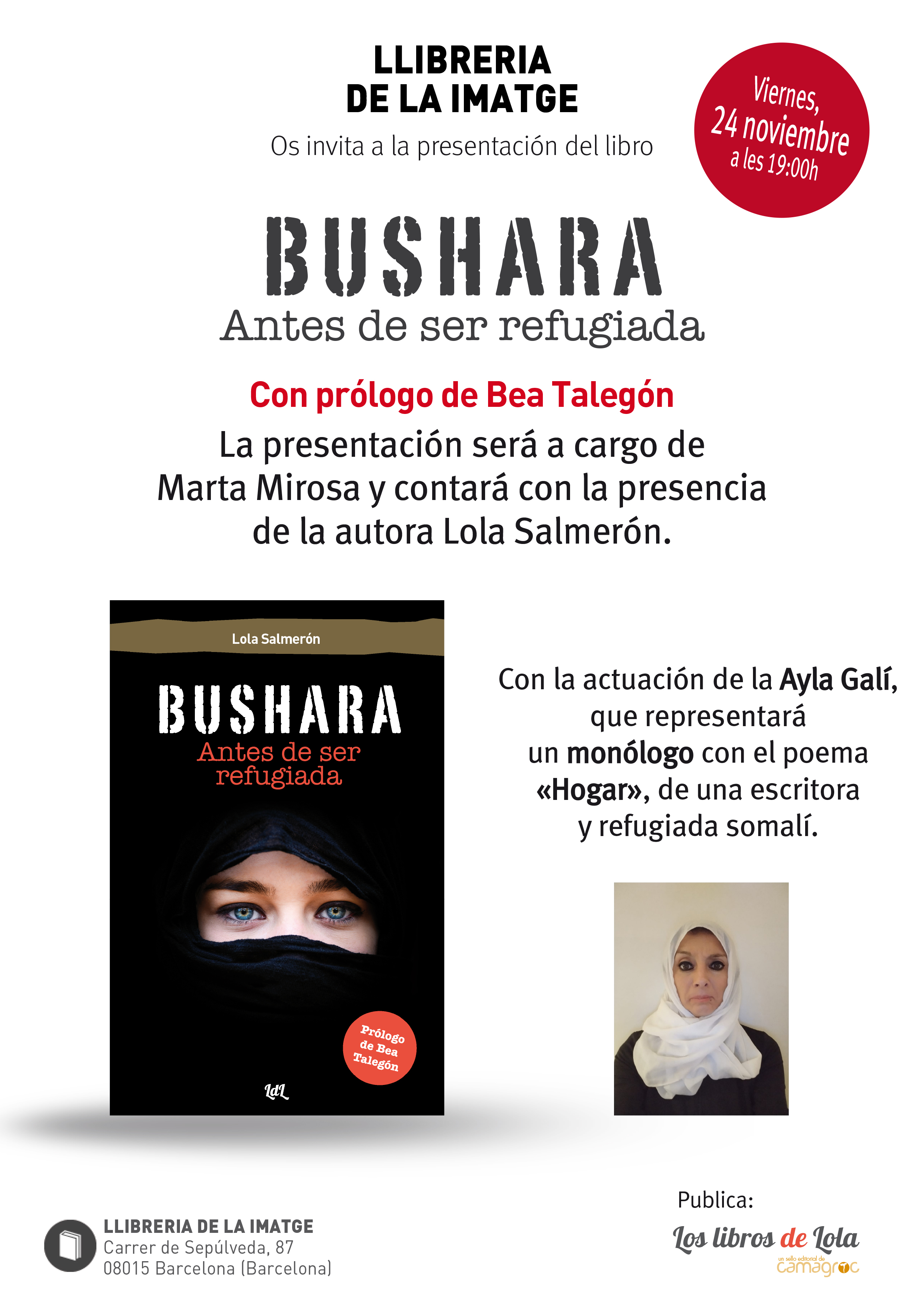 El proper divendres 24 presentem el darrer llibre de l’autora @lolasalmeronlibros : “Bushara” (amb pròleg de Bea Talegón i editat per @loslibrosdelola ).