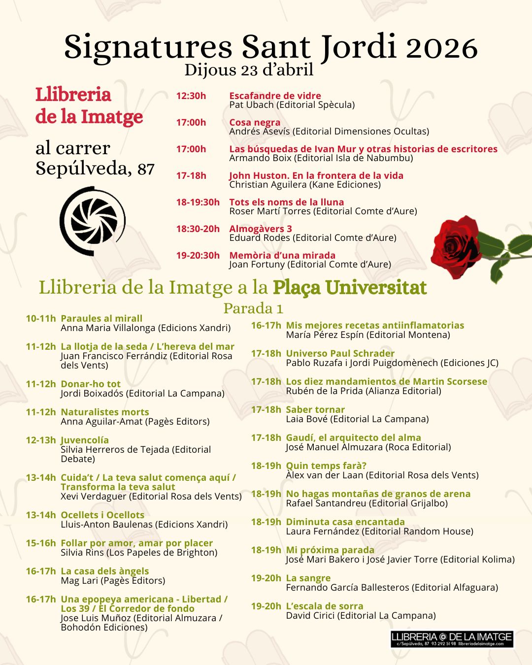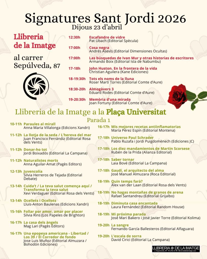 Signatures Sant Jordi 2026 On Abril 21, 2026Abril 21, 2026 Per llibreriadelaimatgeIn AGENDA, SANT JORDI Comparteix això: Share on X (S'obre en una nova finestra) X Comparteix al Facebook (S'obre en una nova finestra) Facebook M'agrada S'està carregant... Relacionats