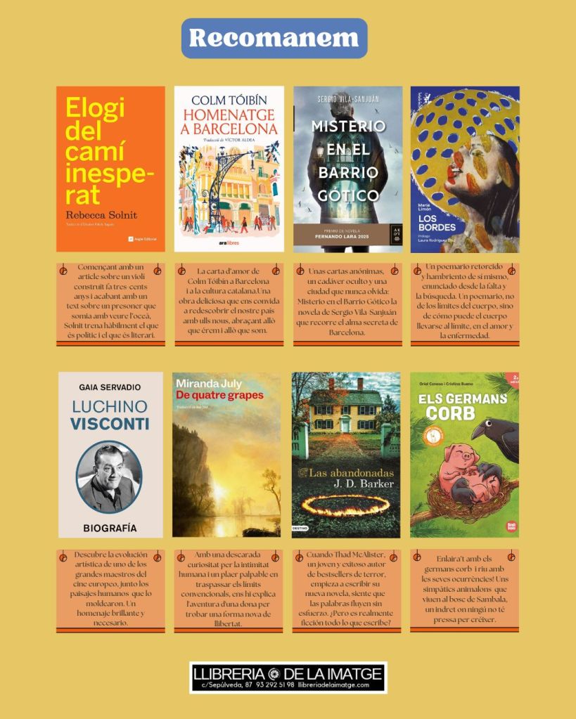 Les nostres recomanacions! On Novembre 3, 2025 Per llibreriadelaimatgeIn LLIBRES, RECOMANEMDeixa un comentari Comparteix això: Feu clic per compartir a X (S'obre en una nova finestra) X Feu clic per compartir al Facebook (S'obre en una nova finestra) Facebook M'agrada S'està carregant...